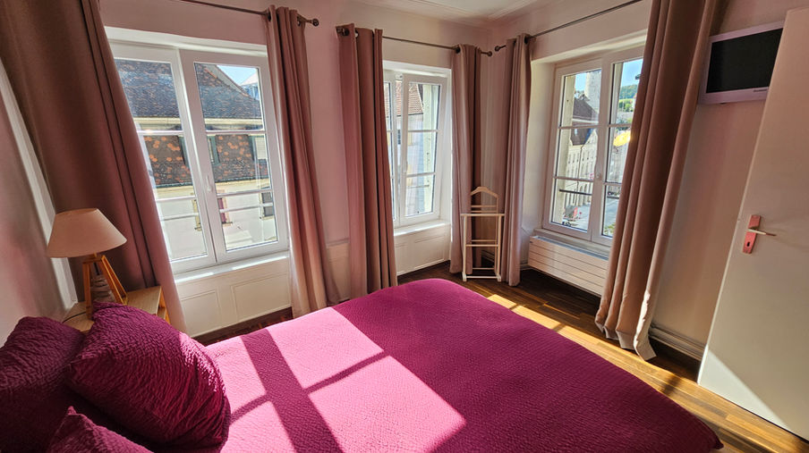 La Suite Pierre-Péquignat se compose d'une chambre avec un lit double, d'un salon avec canapé lit, d'une chambre/bureau avec un lit simple et d'une petite salle de bain. Le lieu vous offre une vue imprenable sur le château de Porrentruy.